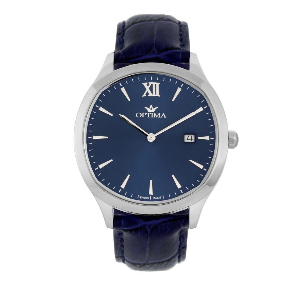 ساعة رجالية بحركة كوارتز سويسرية ومينا أزرق
