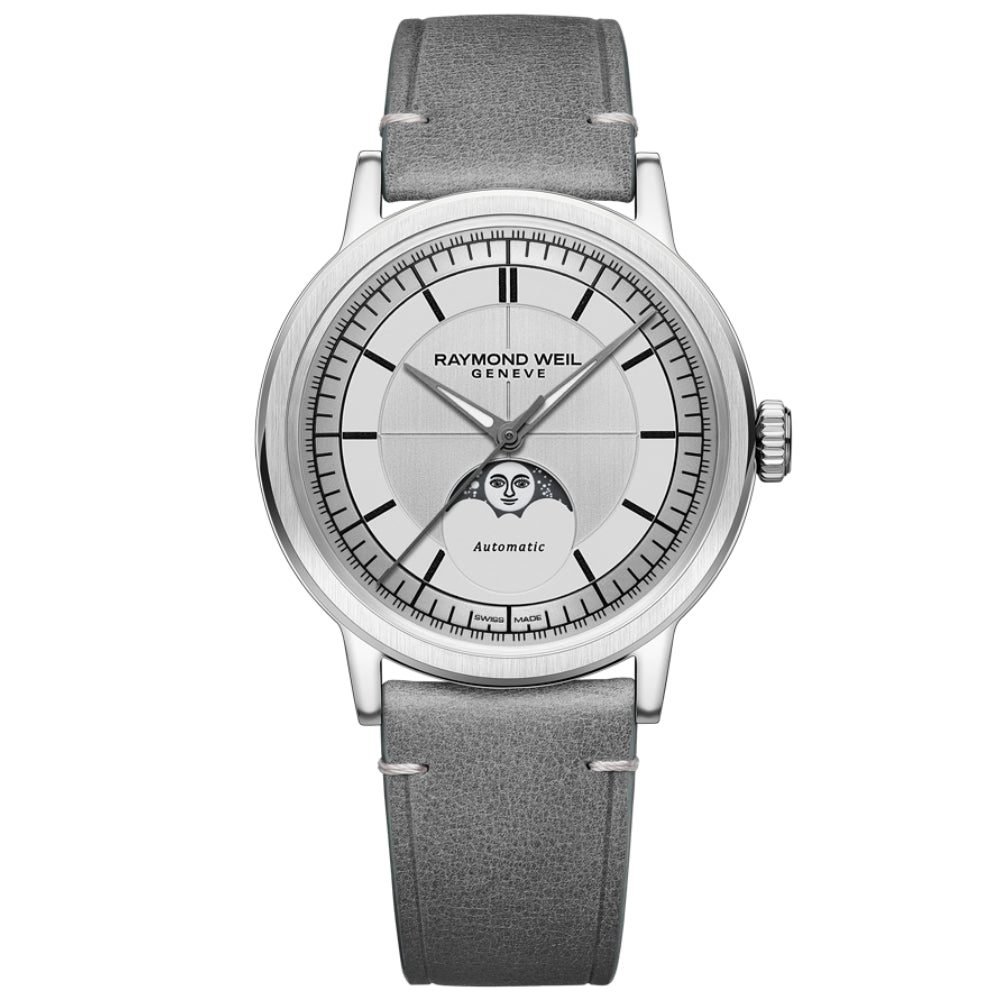 ساعة ميليسيم الرجالية الأوتوماتيكية ذات مراحل القمر مع مينا فضي