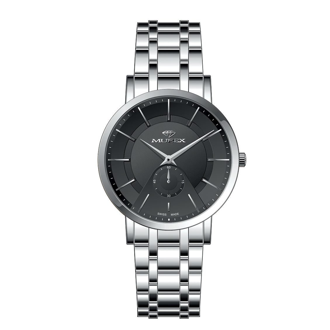 ساعة رجالية بحركة كوارتز سويسرية ومينا فضي أبيض