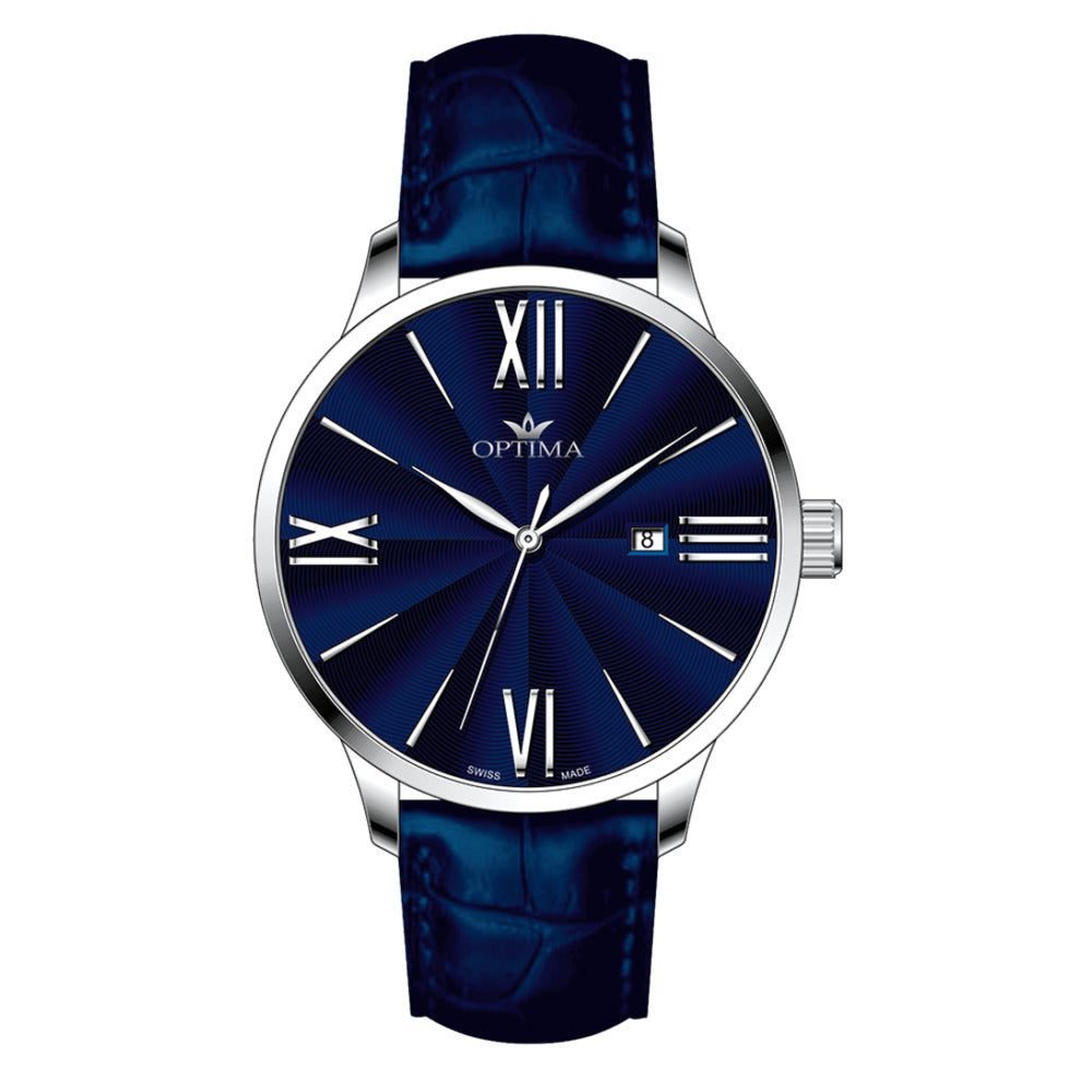 ساعة رجالية بحركة كوارتز سويسرية ومينا أزرق