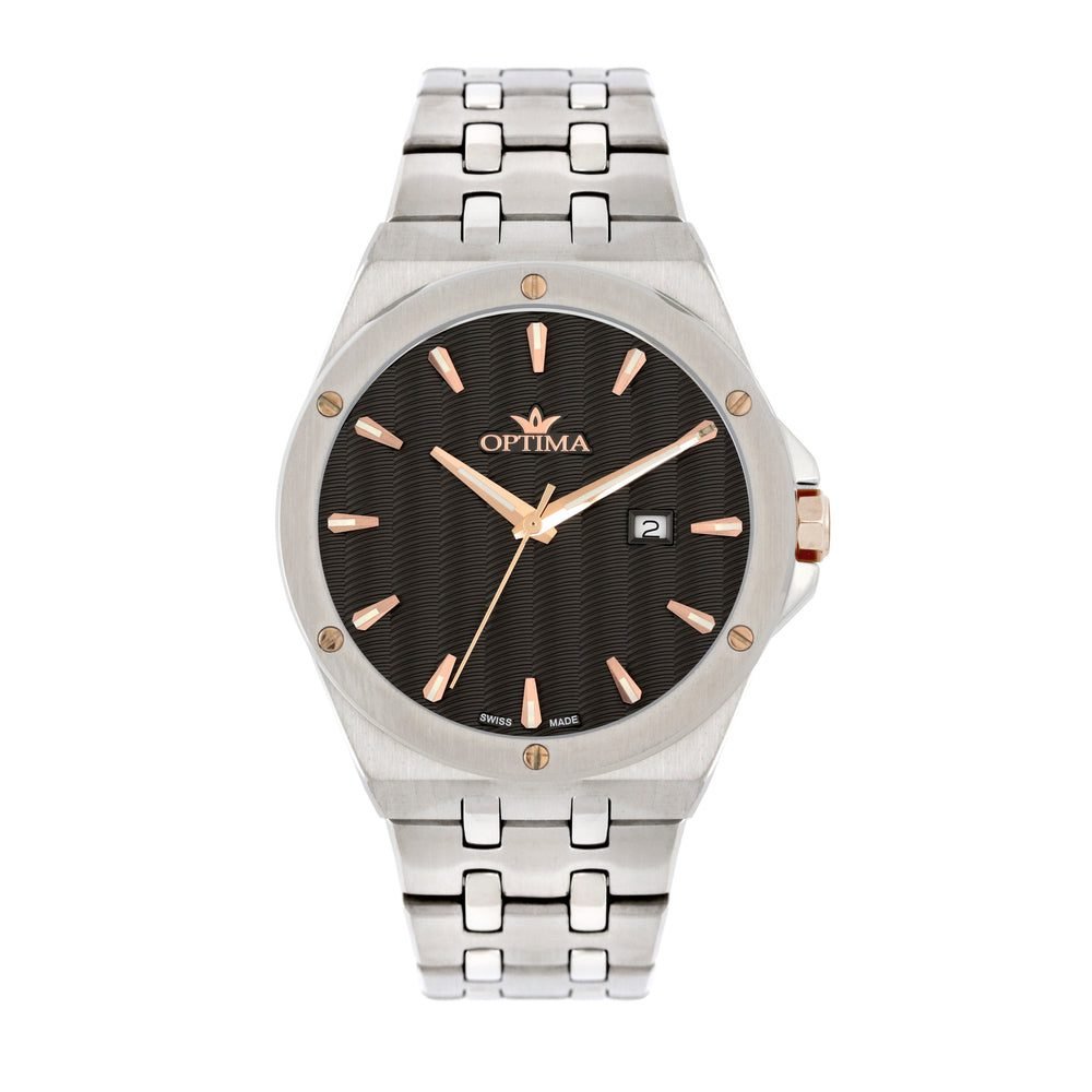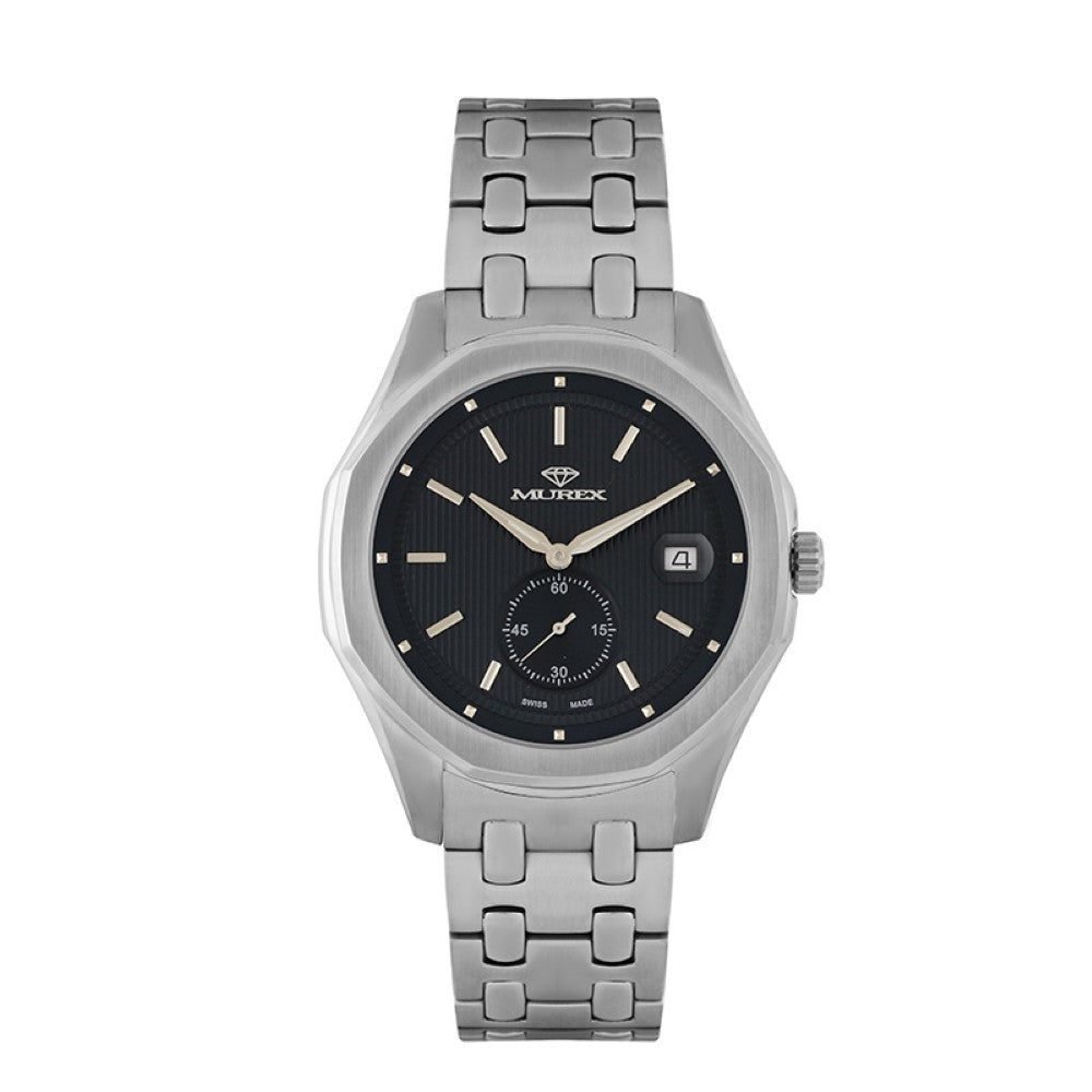 ساعة رجالية بحركة كوارتز سويسرية ومينا أسود