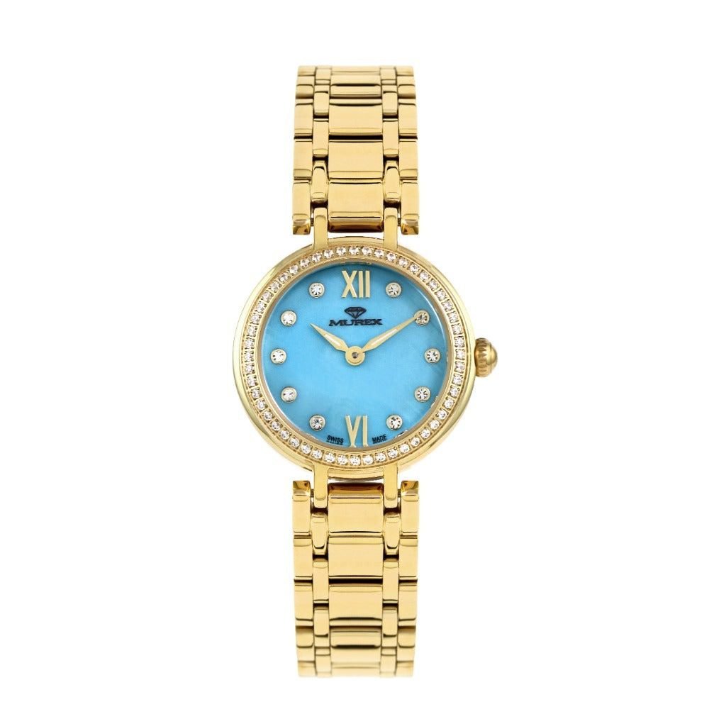 ساعة نسائية سويسرية كوارتز بميناء أزرق