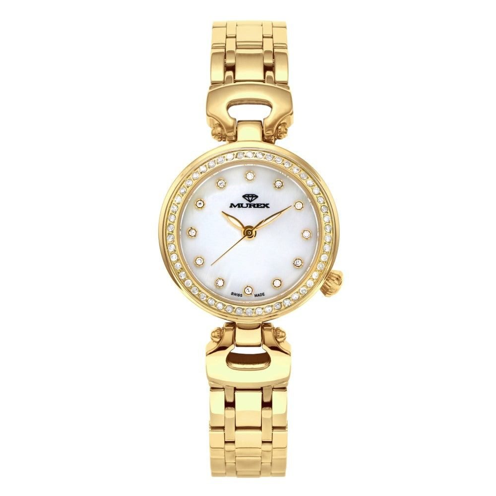 ساعة نسائية سويسرية كوارتز بميناء أبيض لؤلؤي