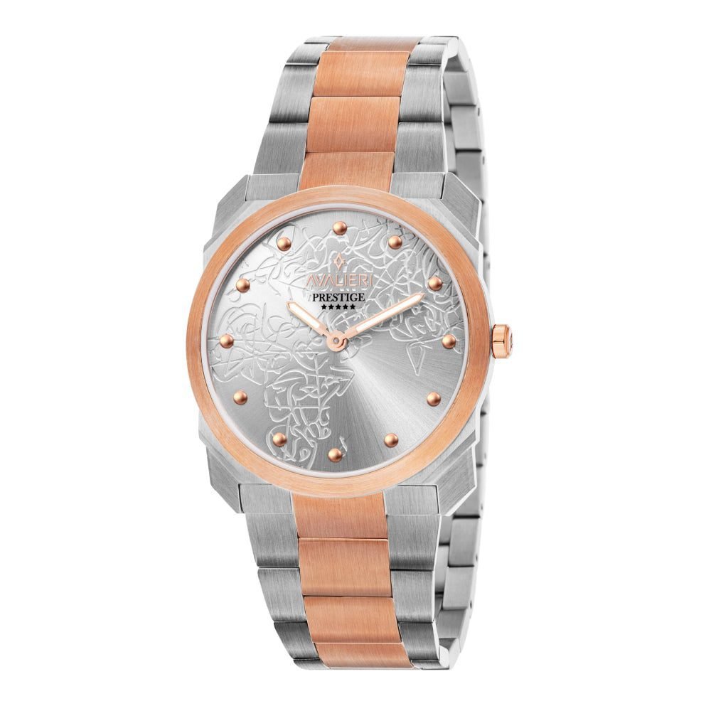ساعة كوارتز بميناء فضي منقوش
