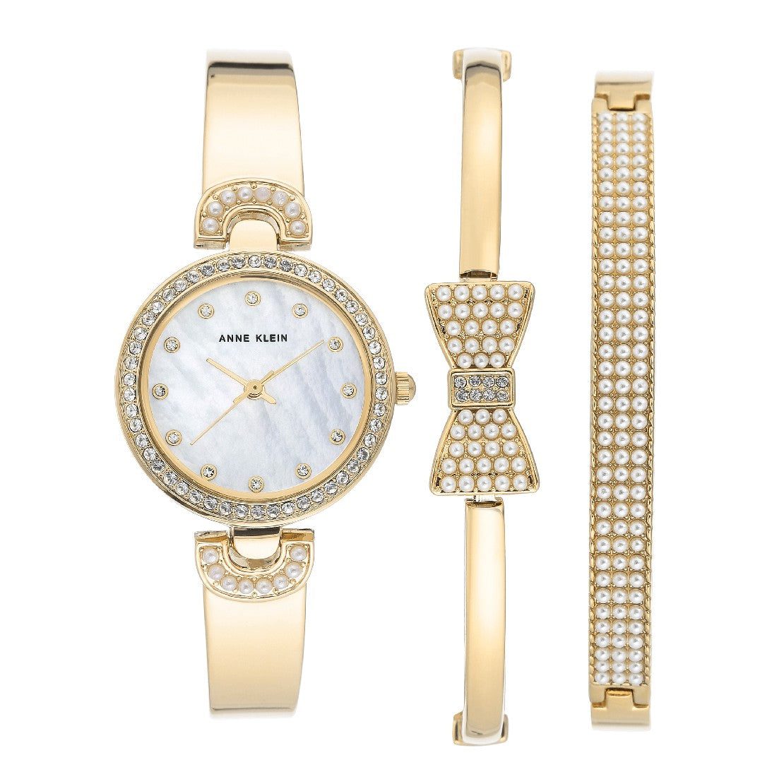 Women’s White Mother of Pearl Dial Quartz Watch with Bracelet Set