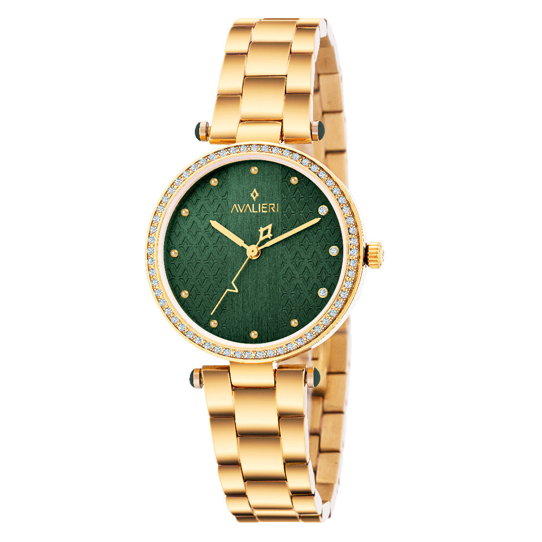 ساعة أفاليري النسائية بحركة كوارتز ولون مينا أخضر - AV-2446B
