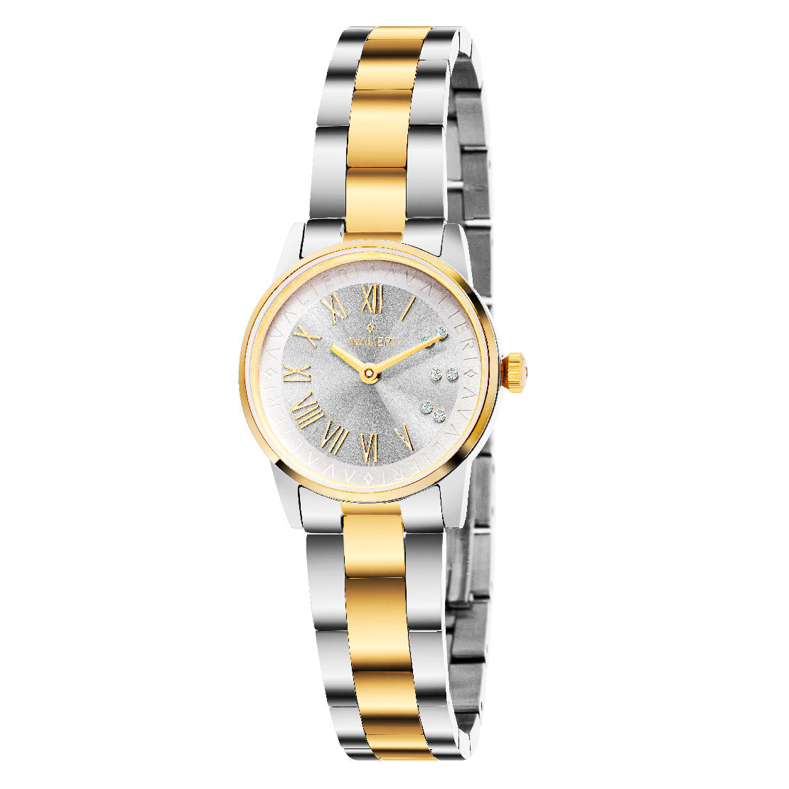 تتميز هذه الساعة من أفاليري باللون الفضي وذهبي وبسوار ذات جودة عالية مصنوعة من الفولاذ المقاوم للصدأ (ستانلس ستيل) وهيكل مصنوع من الفولاذ المقاوم للصدأ (ستانلس ستيل) بمقاس 26ملم وبسمك 7.8ملم محمي بطبقة من الزجاج المعدني القوي وبحركة كوارتز الموثوقة ولدى الساعة مقاومة ضد الماء حتى 50 متر