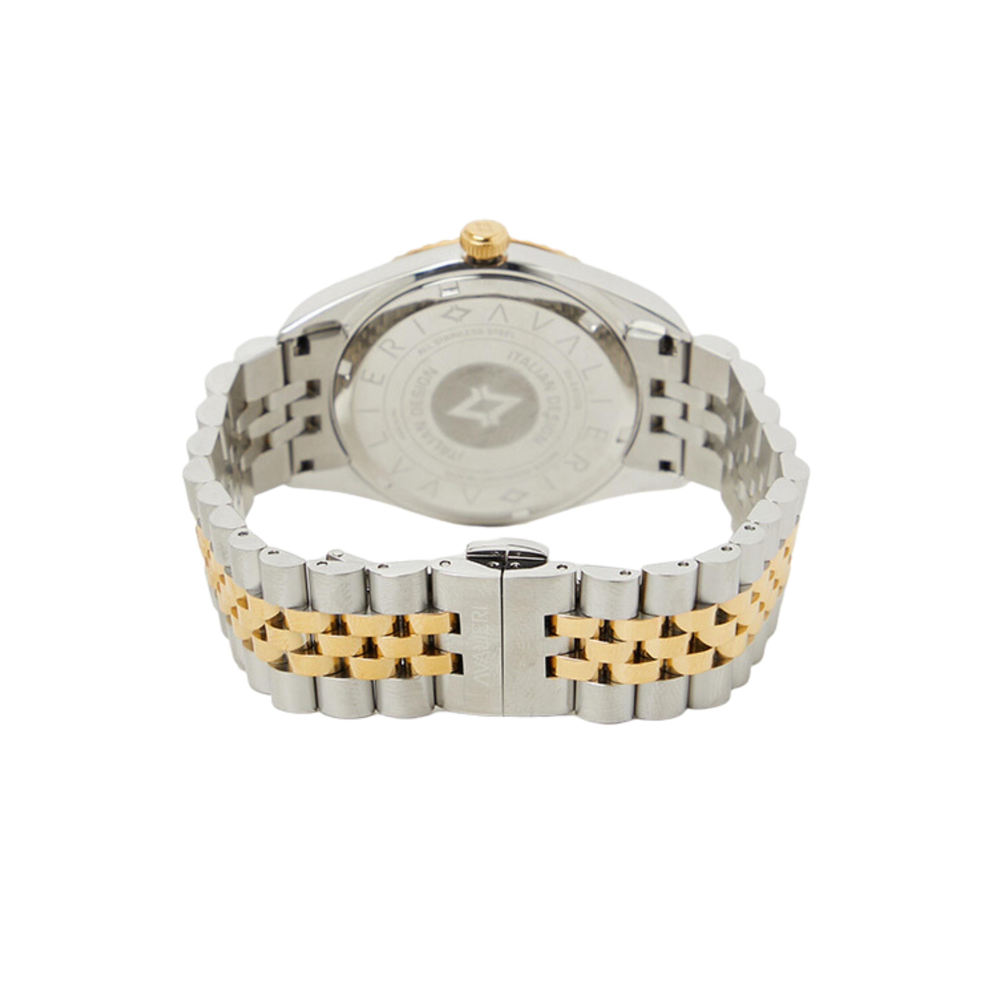 تتميز هذه الساعة من أفاليري باللون الفضي وذهبي وبسوار ذات جودة عالية مصنوعة من الفولاذ المقاوم للصدأ (ستانلس ستيل) وهيكل مصنوع من الفولاذ المقاوم للصدأ (ستانلس ستيل) بمقاس 39.6ملم وبسمك 5.3ملم محمي بطبقة من الزجاج المعدني القوي وبحركة كوارتز الموثوقة ولدى الساعة مقاومة ضد الماء حتى 100 متر