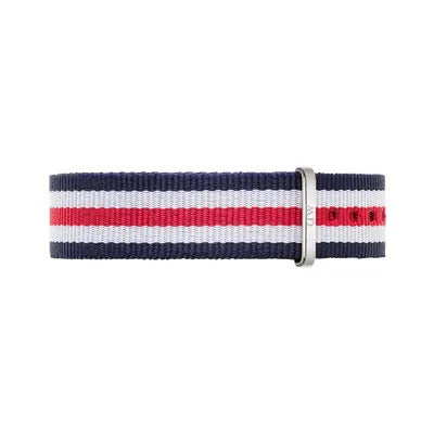 تتميز هذه الساعة من دانيال ولينغتون باللون الأزرق وأبيض وأحمر وبسوار ذات جودة عالية مصنوعة من حزام الناتو (بوليستر) وهيكل مصنوع من الفولاذ المقاوم للصدأ (ستانلس ستيل) بمقاس 36ملم وبسمك 6ملم محمي بطبقة من الزجاج المعدني القوي وبحركة كوارتز الموثوقة ولدى الساعة مقاومة ضد الماء حتى 30 متر