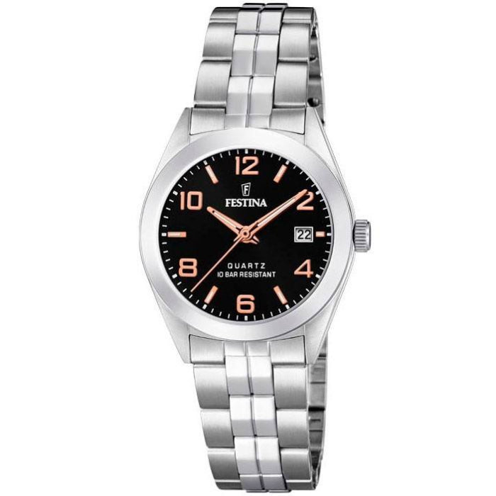 ساعة فيستينا النسائية بحركة كوارتز ولون مينا أسود - f20438/6