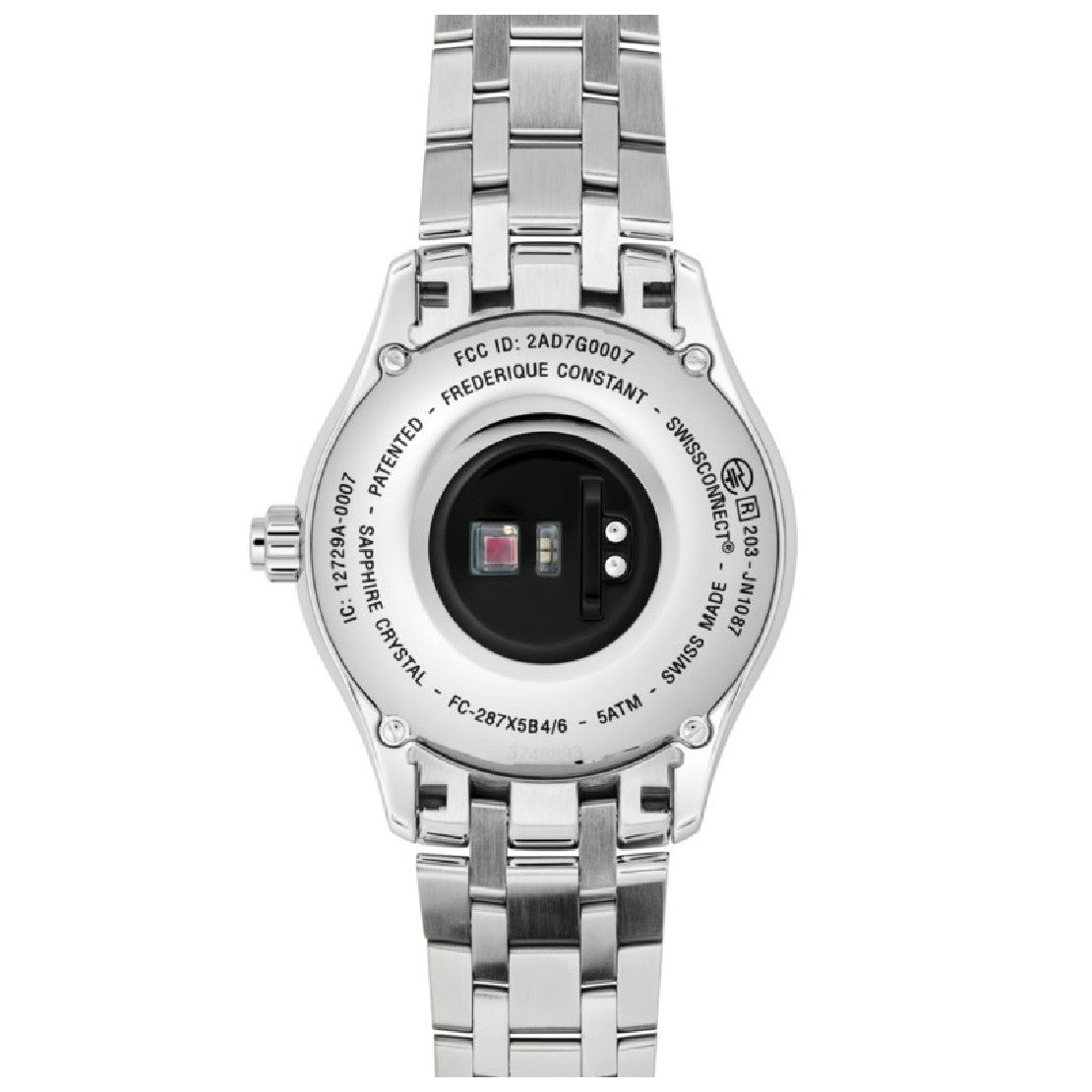 تتميز هذه الساعة من فريدريك كونستانت باللون الفضي وبسوار ذات جودة عالية مصنوعة من الفولاذ المقاوم للصدأ (ستانلس ستيل) وهيكل مصنوع من الفولاذ المقاوم للصدأ (ستانلس ستيل) بمقاس 42ملم وبسمك 14ملم محمي بطبقة من الزجاج الياقوت القوي وبحركة كوارتز الموثوقة ولدى الساعة مقاومة ضد الماء حتى 50 متر ويوجد شاحن للساعة