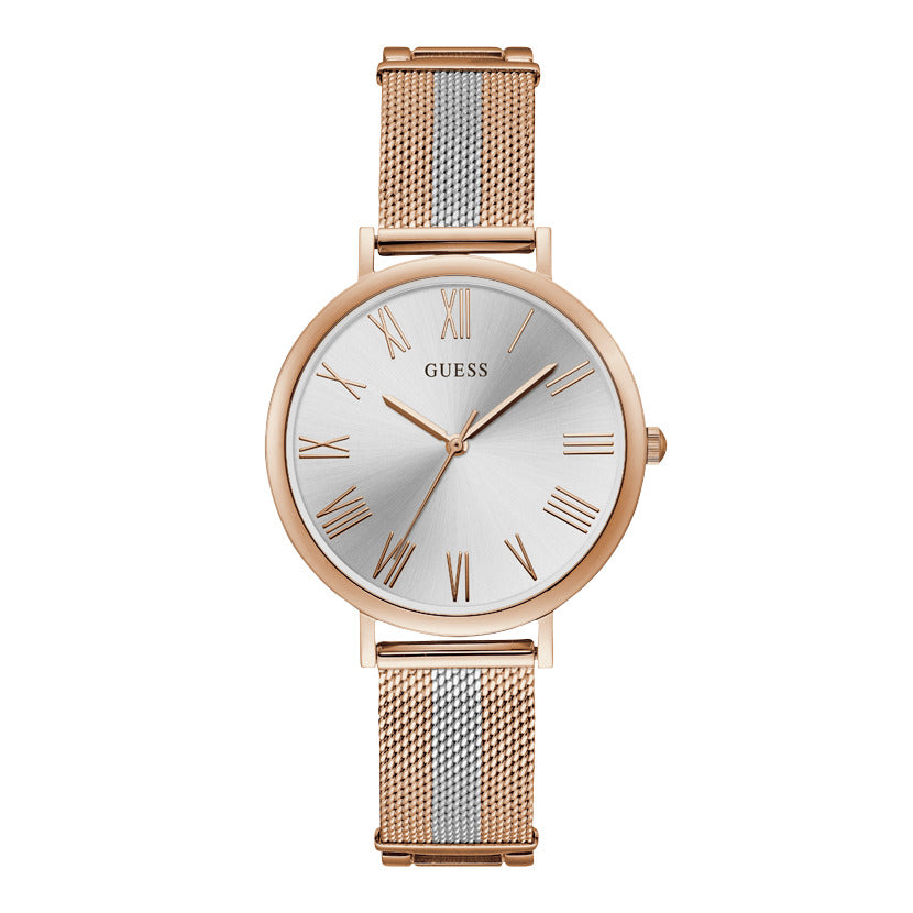 تتميز هذه الساعة من جيس باللون الذهبي وردي (روز جولد) وفضي وبسوار ذات جودة عالية مصنوعة من الفولاذ المقاوم للصدأ (ستانلس ستيل) وهيكل مصنوع من الفولاذ المقاوم للصدأ (ستانلس ستيل) بمقاس 38ملم وبسمك 8ملم محمي بطبقة من الزجاج المعدني القوي وبحركة كوارتز الموثوقة ولدى الساعة مقاومة ضد الماء حتى 30 متر