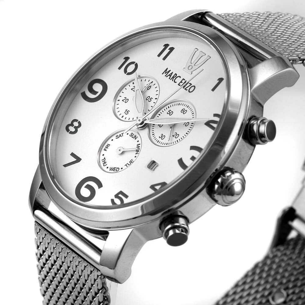 ساعة مارك انزو الرجالية بحركة كوارتز ولون مينا أبيض - MAR-0045