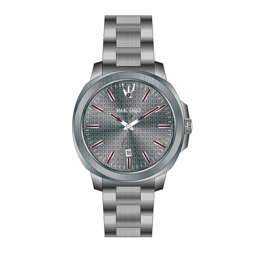ساعة مارك انزو الرجالية بحركة كوارتز ولون مينا رمادي - MAR-0083