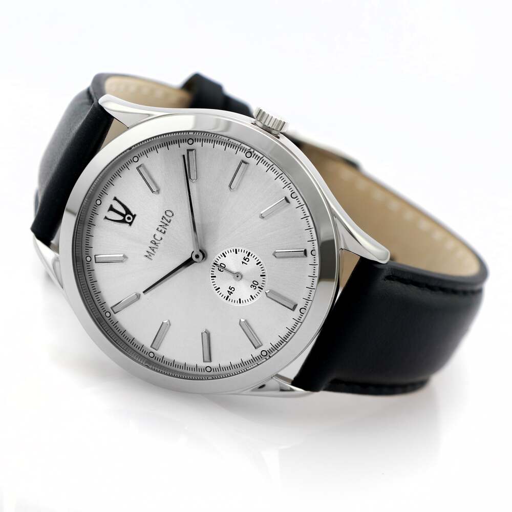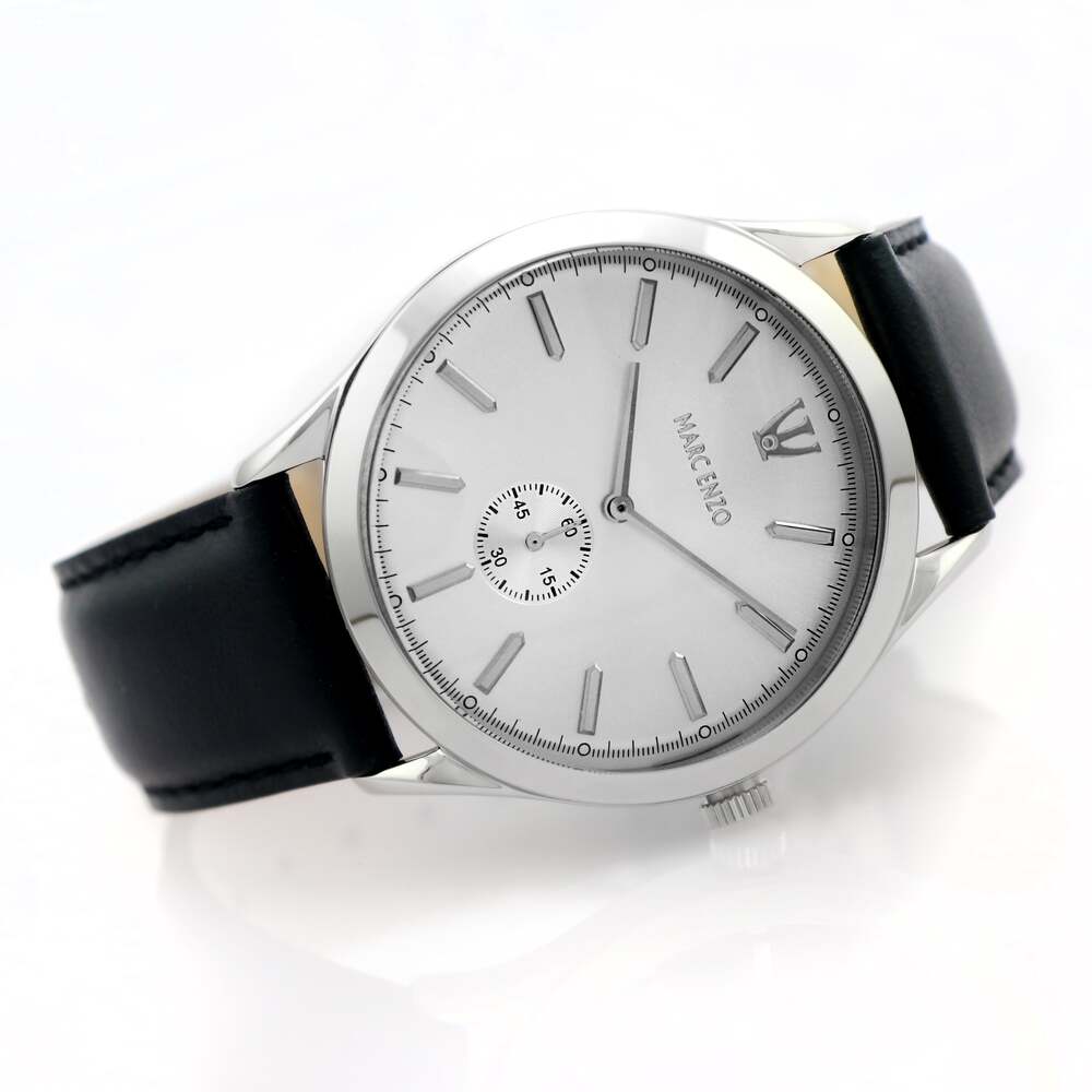 تتميز هذه الساعة من مارك انزو باللون الأسود وبسوار ذات جودة عالية مصنوعة من الجلد وهيكل مصنوع من الفولاذ مقاوم للصدأ (ستانلس ستيل) بمقاس 41ملم وبسمك 10.7ملم محمي بطبقة من الزجاج المعدني القوي وبحركة كوارتز الموثوقة ولدى الساعة مقاومة ضد الماء حتى 50 متر