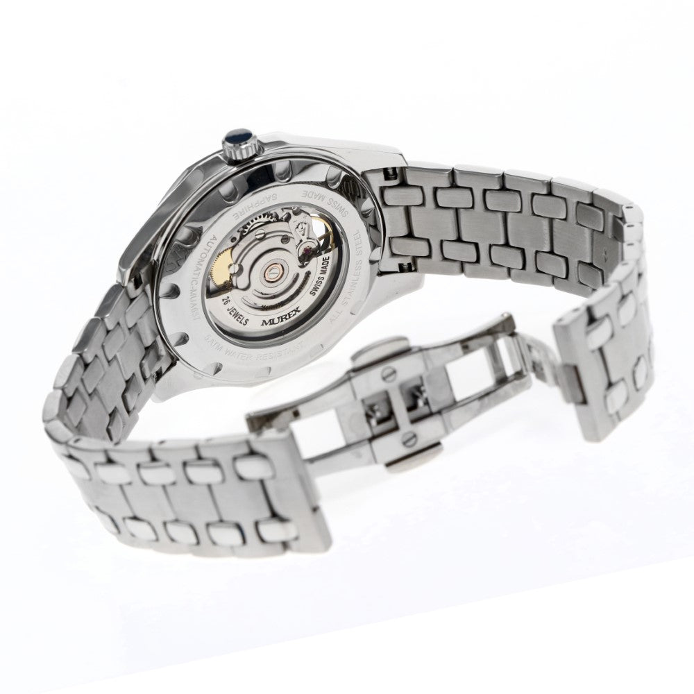 تتميز هذه الساعة من موريكس باللون الفضي وبسوار ذات جودة عالية مصنوعة من الفولاذ المقاوم للصدأ (ستانلس ستيل) وهيكل مصنوع من الفولاذ المقاوم للصدأ (ستانلس ستيل) بمقاس 45ملم وبسمك 12ملم محمي بطبقة من الزجاج المعدني القوي وبحركة أوتوماتيكية الموثوقة ولدى الساعة مقاومة ضد الماء حتى 50 متر