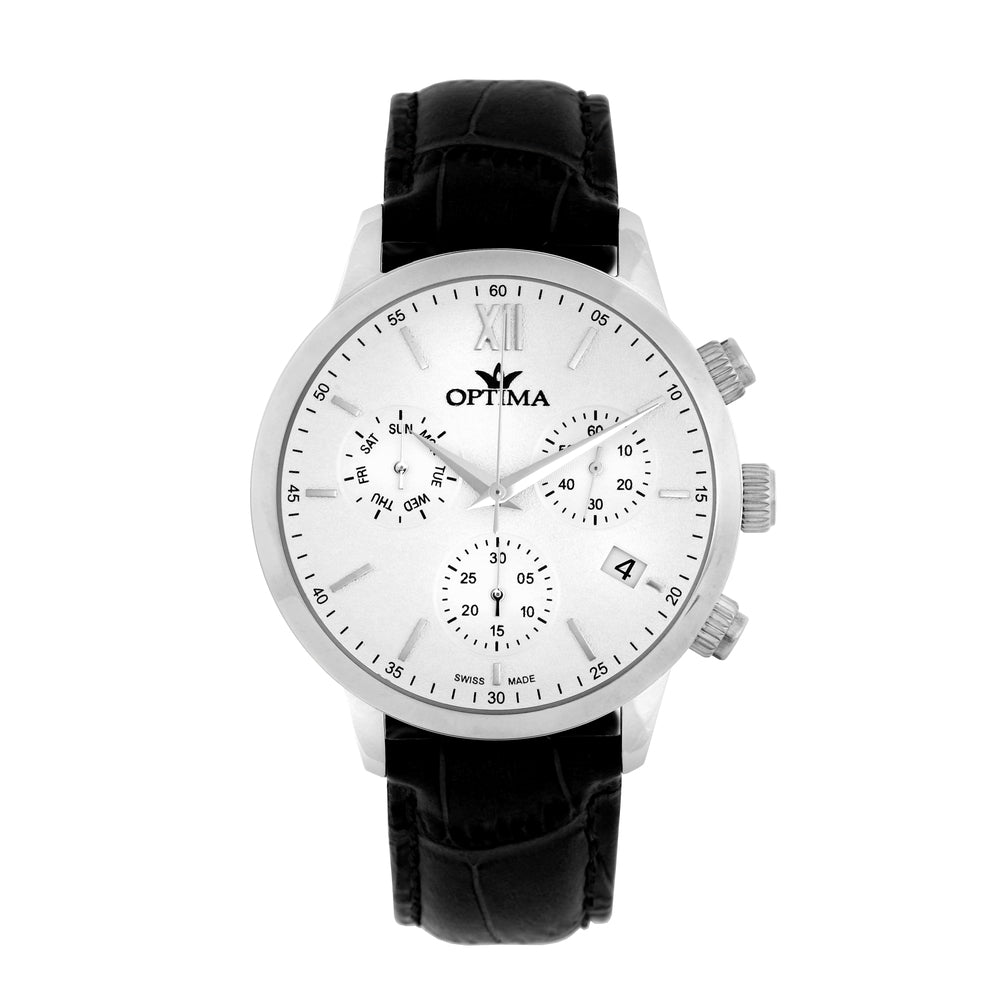 ساعة أوبتيما الرجالية السويسرية بحركة كوارتز ولون مينا أبيض - OPT-0003