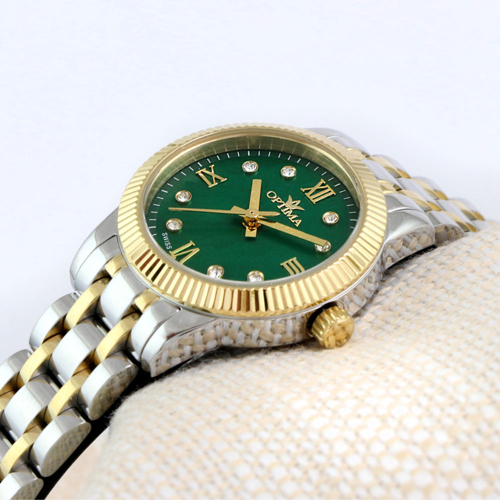 ساعة أوبتيما النسائية بحركة كوارتز ولون مينا أخضر - OPT-0103