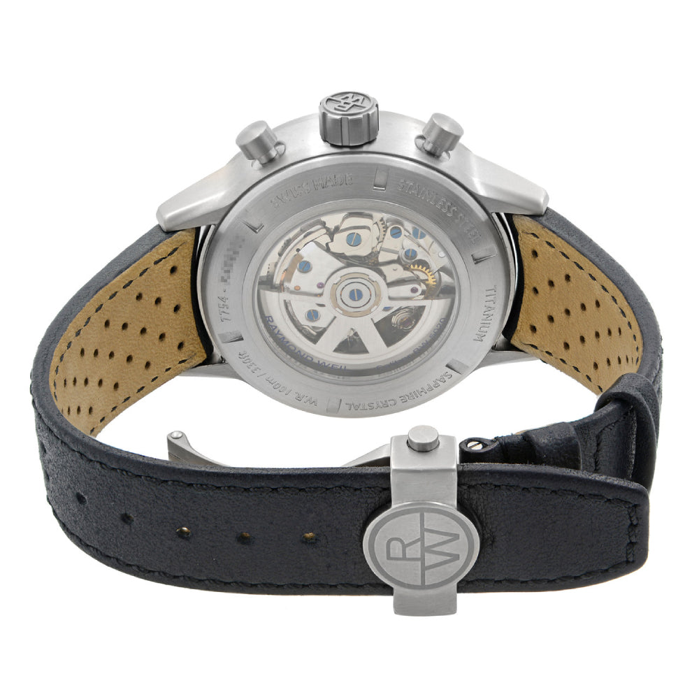 تتميز هذه الساعة من ريموند ويل باللون الأسود وبسوار ذات جودة عالية مصنوعة من الجلد وهيكل مصنوع من الفولاذ المقاوم للصدأ (ستانلس ستيل) بمقاس 45ملم وبسمك 14ملم محمي بطبقة من الزجاج الياقوت القوي وبحركة أوتوماتيكية الموثوقة ولدى الساعة مقاومة ضد الماء حتى 100 متر