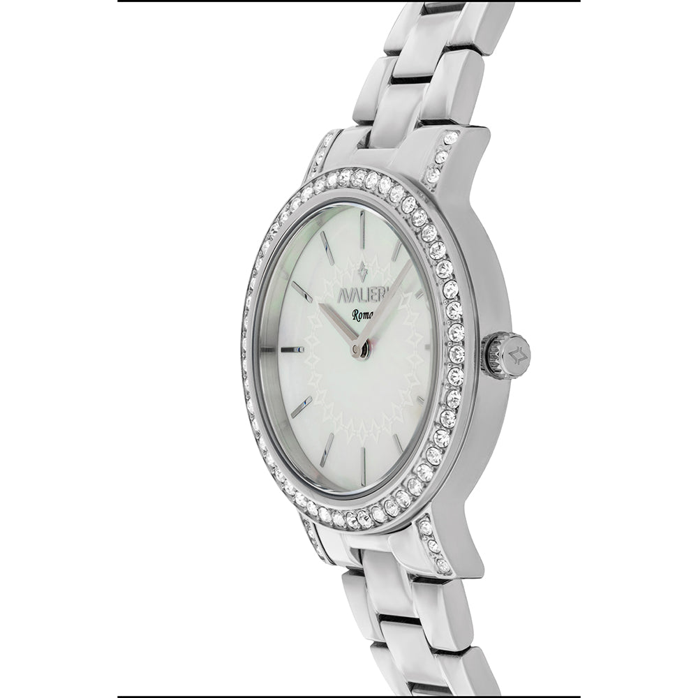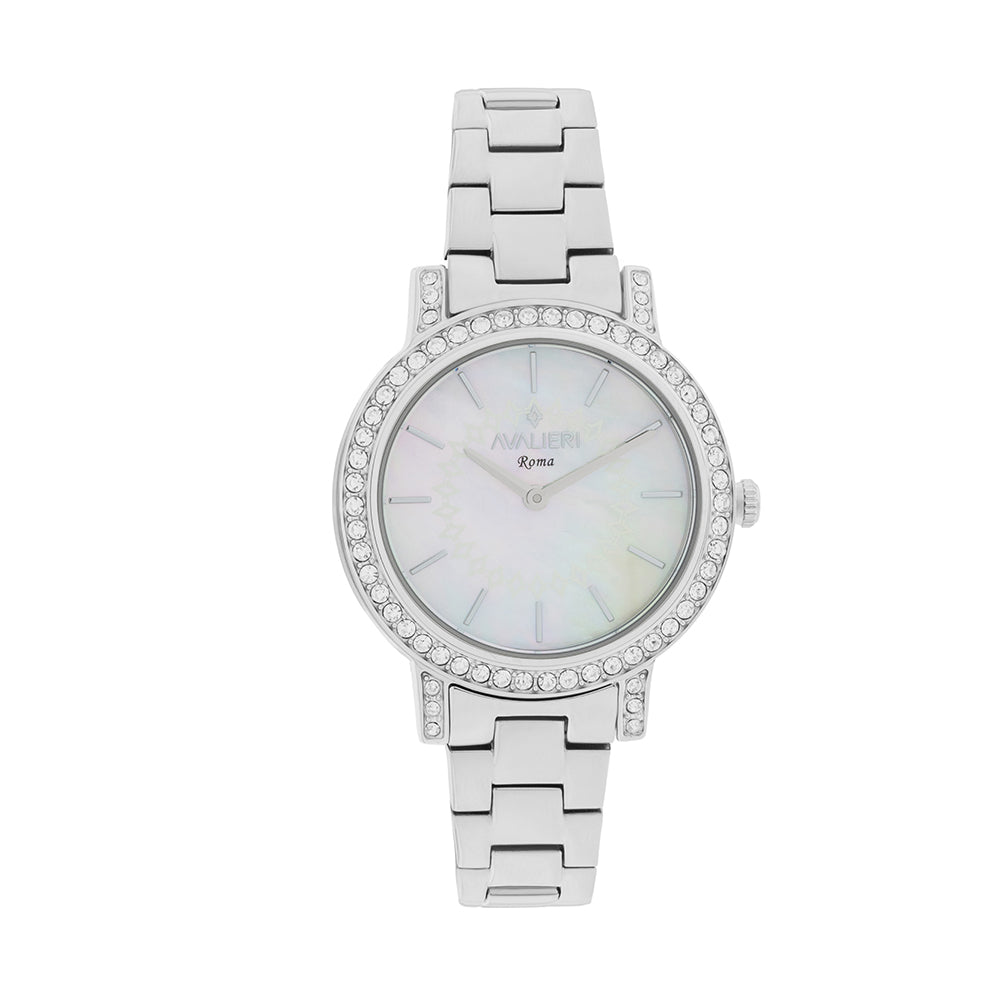 ساعة أفاليري النسائية بحركة كوارتز ولون مينا أبيض - AV-2656B+BR