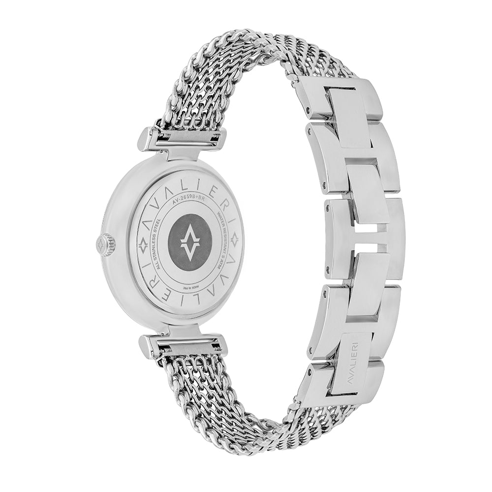 ساعة أفاليري النسائية بحركة كوارتز ولون مينا أبيض فضي بملمس رملي - AV-2659B+BR